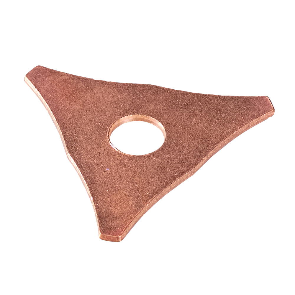 Специализированный электрод треугольной формы для точечной сварки. Уникальная геометрия электрода позволяет работать в труднодоступных местах и обеспечивает точное позиционирование при выполнении сварочных работ. Изготовлен из высококачественного медного сплава с оптимальной теплопроводностью.